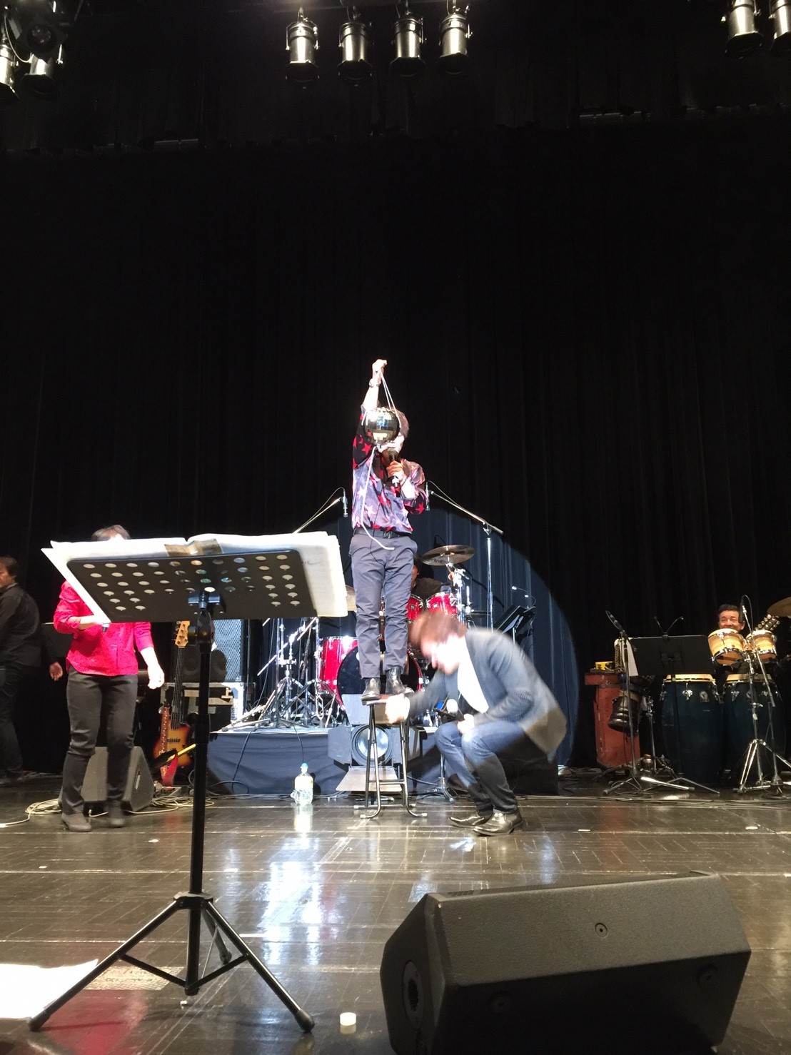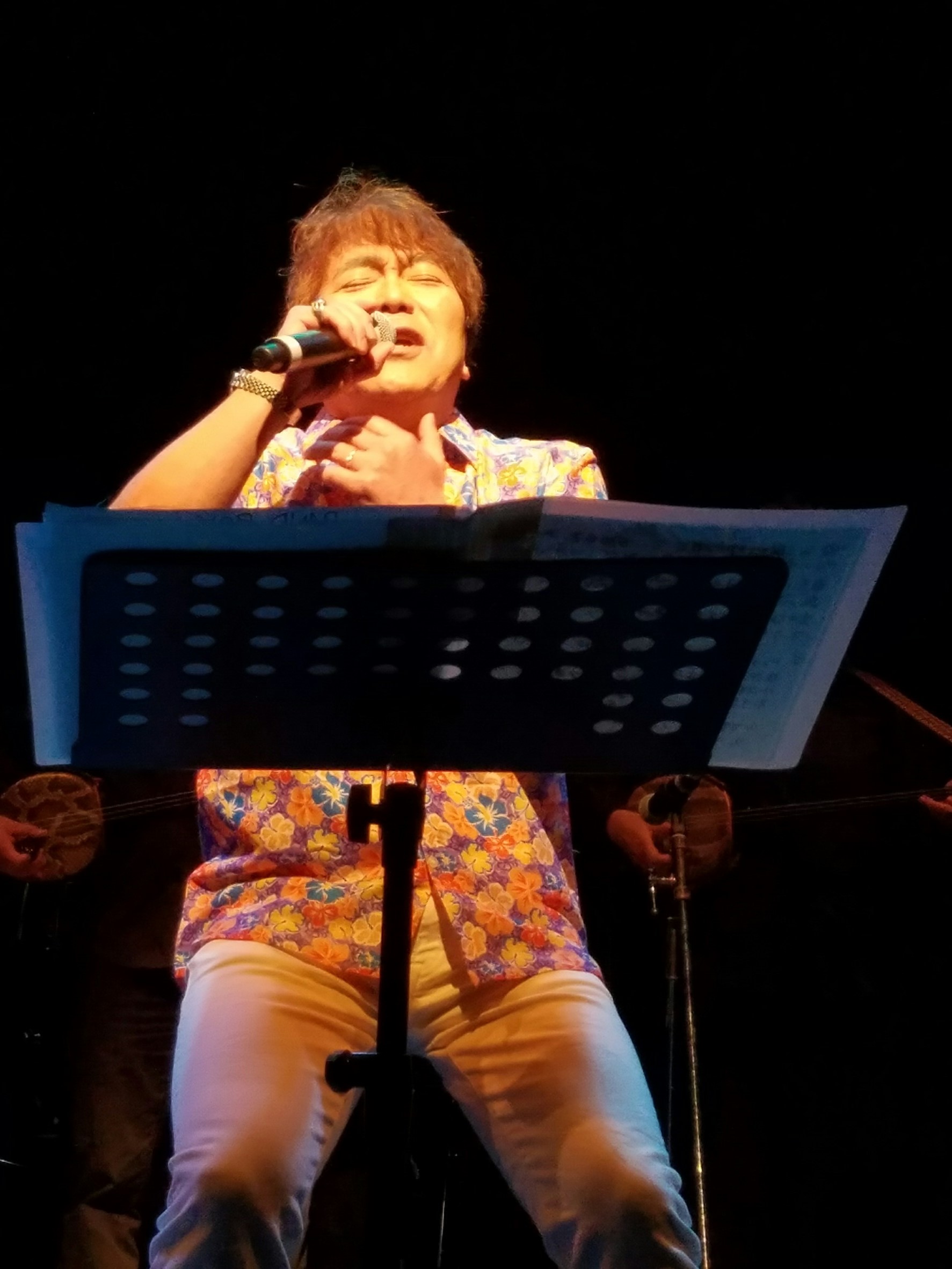 今回のコンサートは今までと少し違っていました。オープニングは教え子の三線隊のみの演奏で沖縄民謡。今までのコンサートは正男さん自身も三線を弾いていましたが、今回は弾きませんでした。三線隊の演奏が終わった後はちびっ子たちが正男さんの歌で踊りました。そして会場のお客様もお席でダンスをしていました。立って踊りたかっただろ~な~。