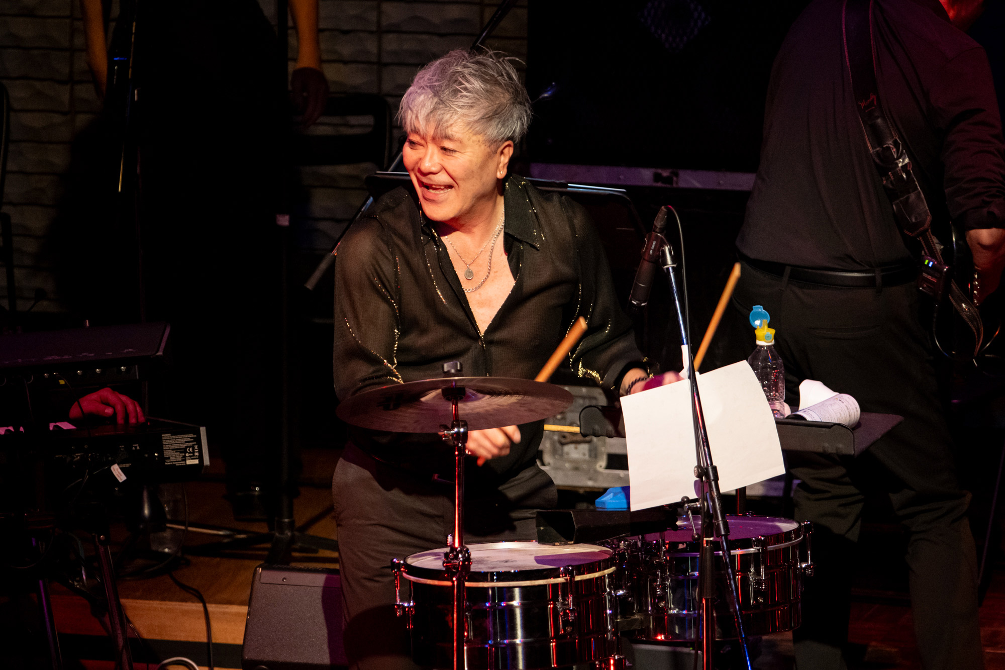 毎回、趣向を凝らして見せるバースデーライブ、今年はティンバレスに挑戦。